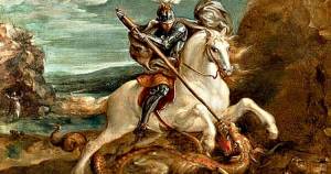 Así pasaron varios años, hasta que en uno de esos sorteos el rey recibió la fatal noticia de que su hija había sido la escogida para morir devorada por el dragón. Desesperado, el rey buscó soluciones sin éxito, hasta que cuando se acercaba la hora de sacrificar a su bella hija apareció un joven caballero con armadura montado sobre un caballo blanco dispuesto a enfrentarse con el dragón.