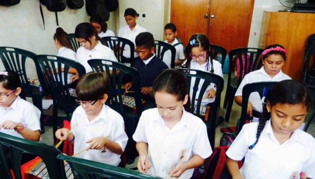 Son las 7:30 de la mañana. Los xilofones se encuentran sobre las sillas plásticas y los chamos sonrientes irrumpen en el salón con la energía que los caracteriza a esa hora de la mañana. Se ubican sentados en el piso y el asiento de la silla sirve como mesa para el instrumento.